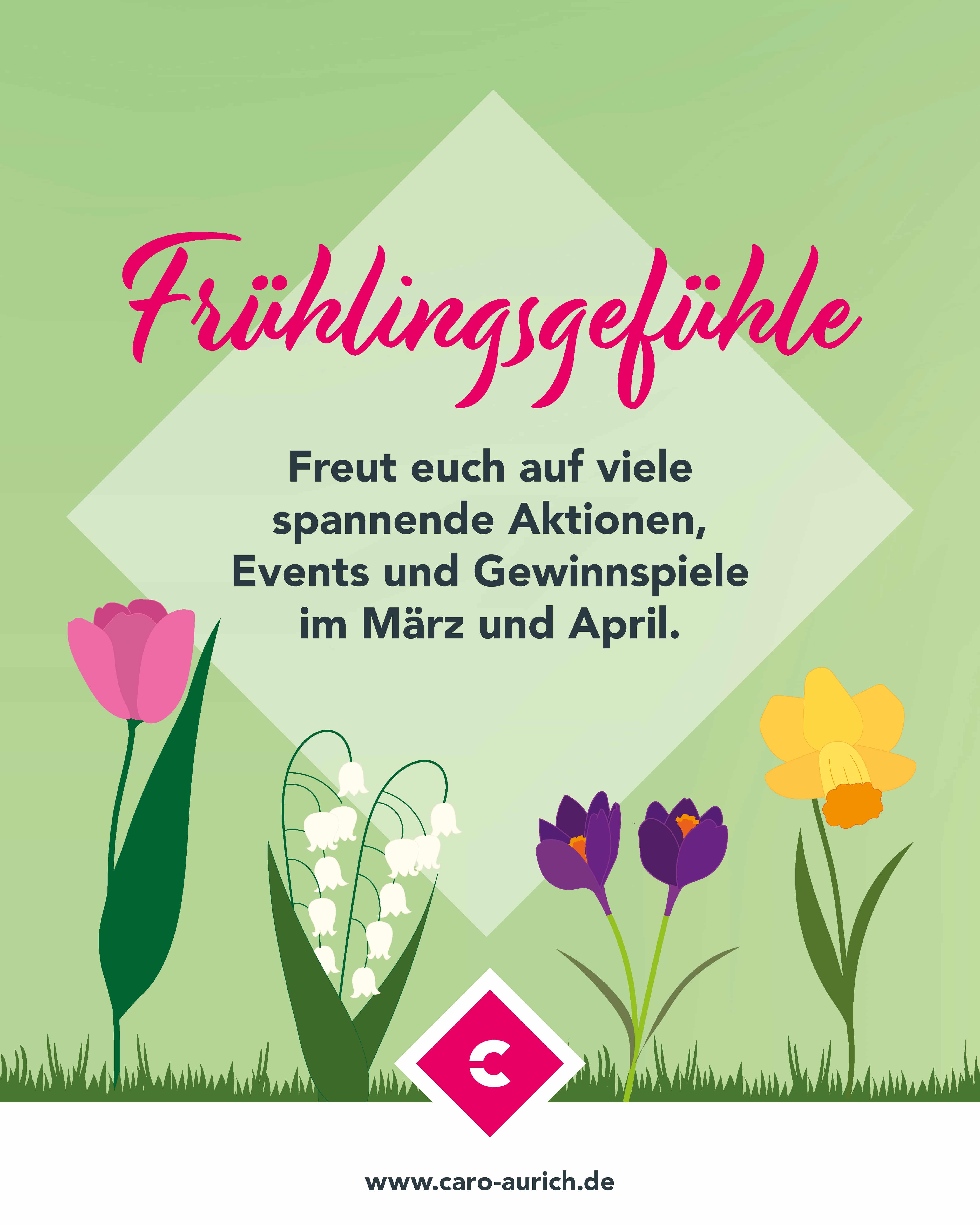 Die ersten Sonnenstrahlen kitzeln auf der Haut und wir sagen: Moin Frühling! Ab den 02. März geht’s los mit ganz viel Herzklopfen, guter Laune und tollen Überraschungen im caro! Freut euch in den kommenden Wochen auf: Bunte Aktionen, spaßige Events und coole Gewinnspiele mit tollen Preisen. 💛