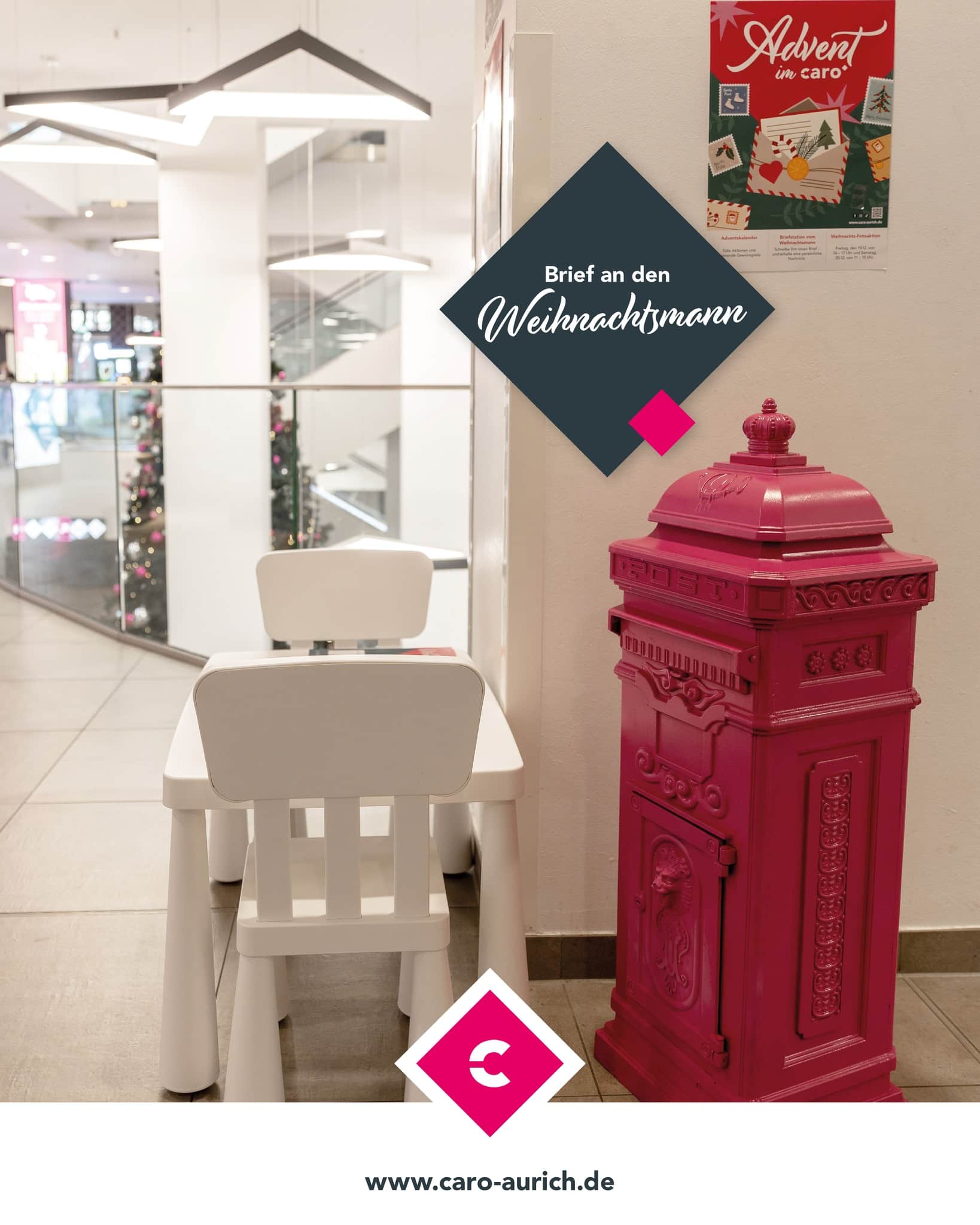 Kleine (und groĂe) Weihnachtsfans aufgepasst: Vor der FlĂ€che bei C&A wartet ein ganz besonderer Tisch auf euch â mit Briefvorlagen, bunten Stiften und natĂŒrlich einem Briefkasten direkt fĂŒr den Weihnachtsmann! đđïž
